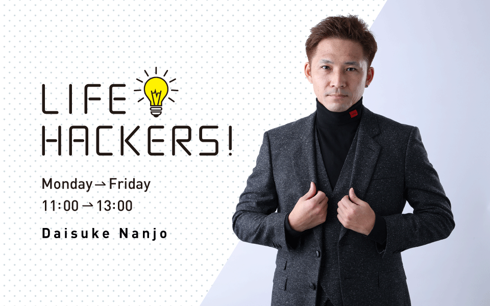 東海地方を中心に活躍する南城大輔が、“LIFE HACKS”(ライフハック)をテーマに日常生活に役立つちょっとしたアイデアとオトナなミュージックをお届けするプログラム。